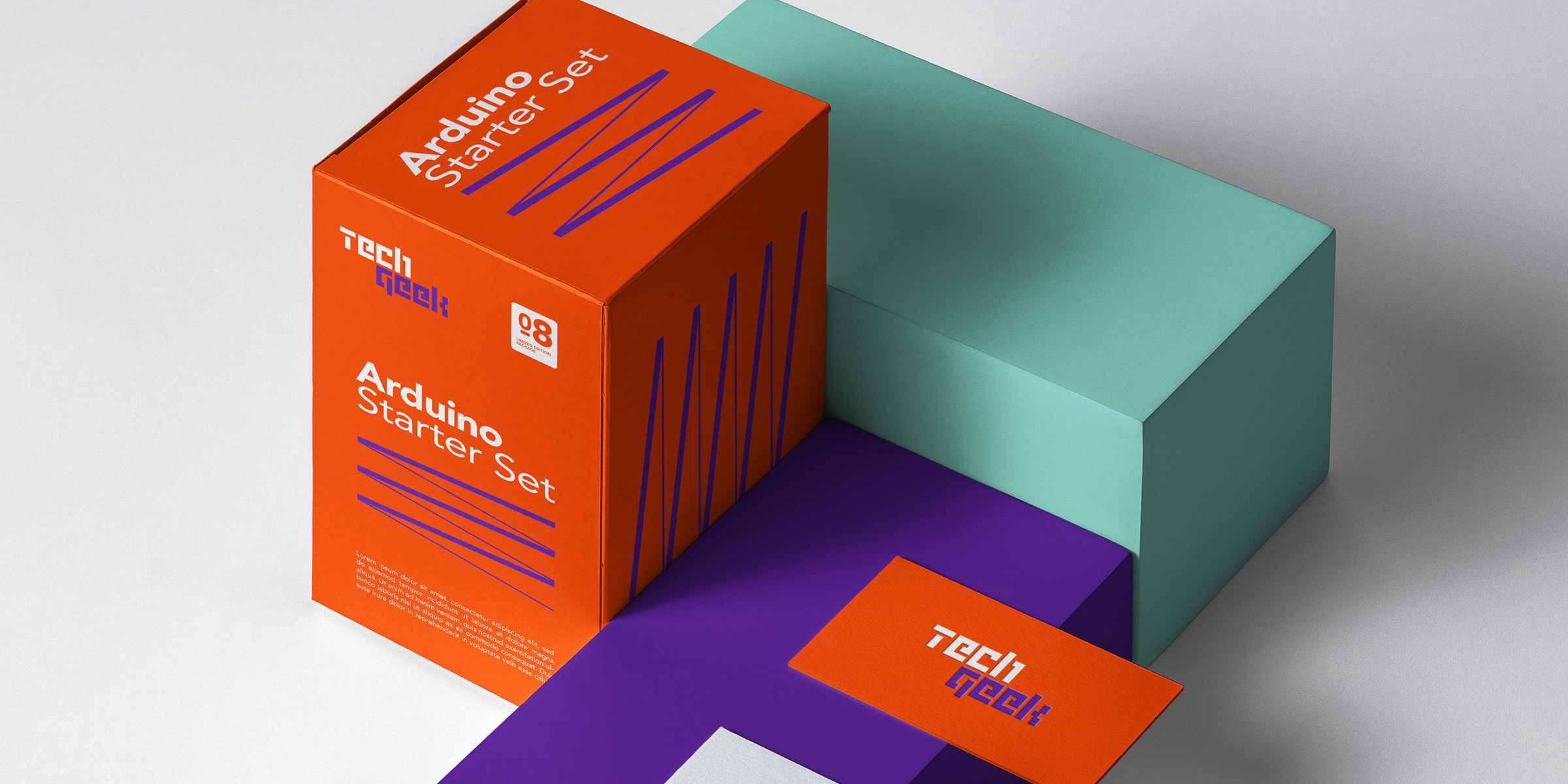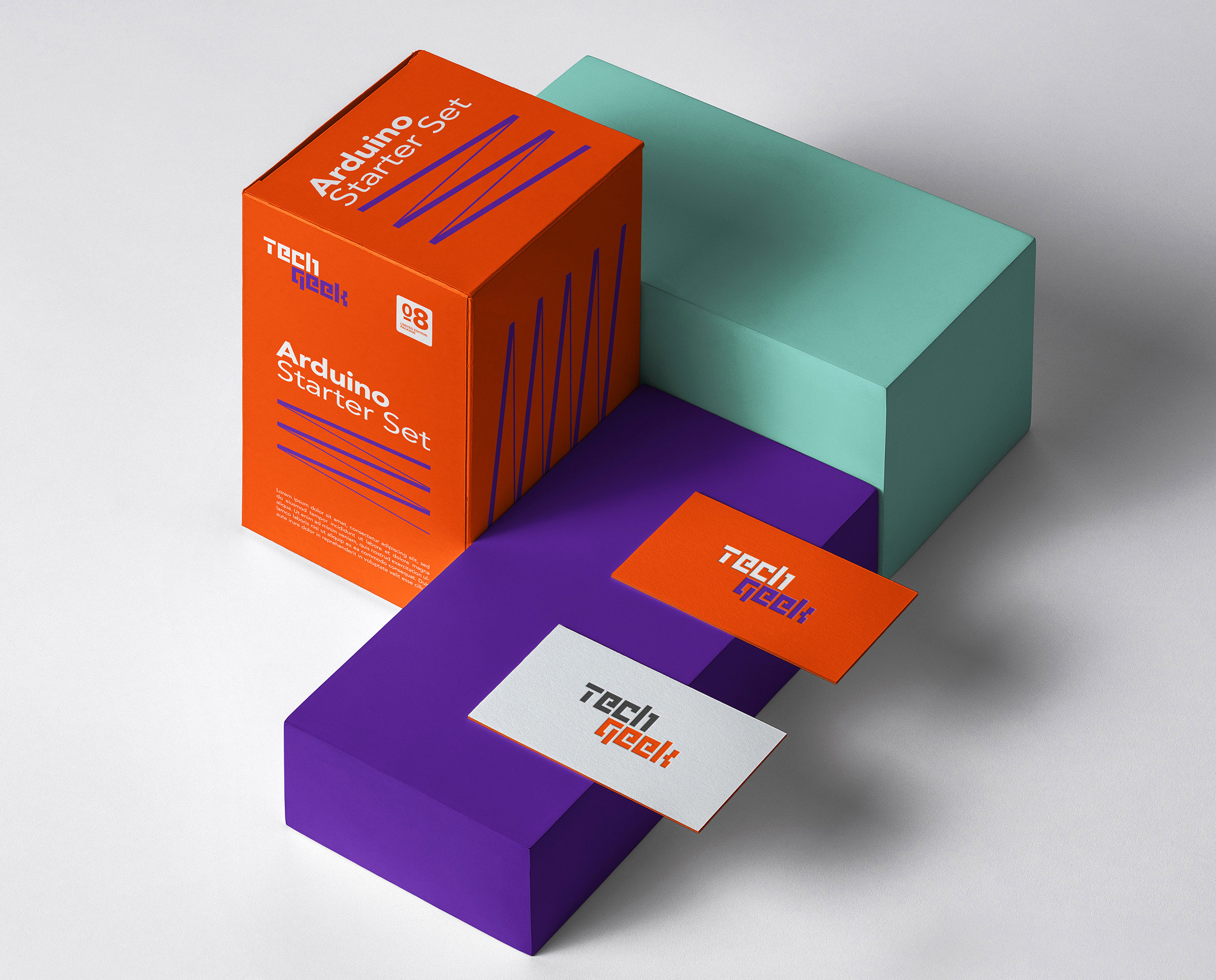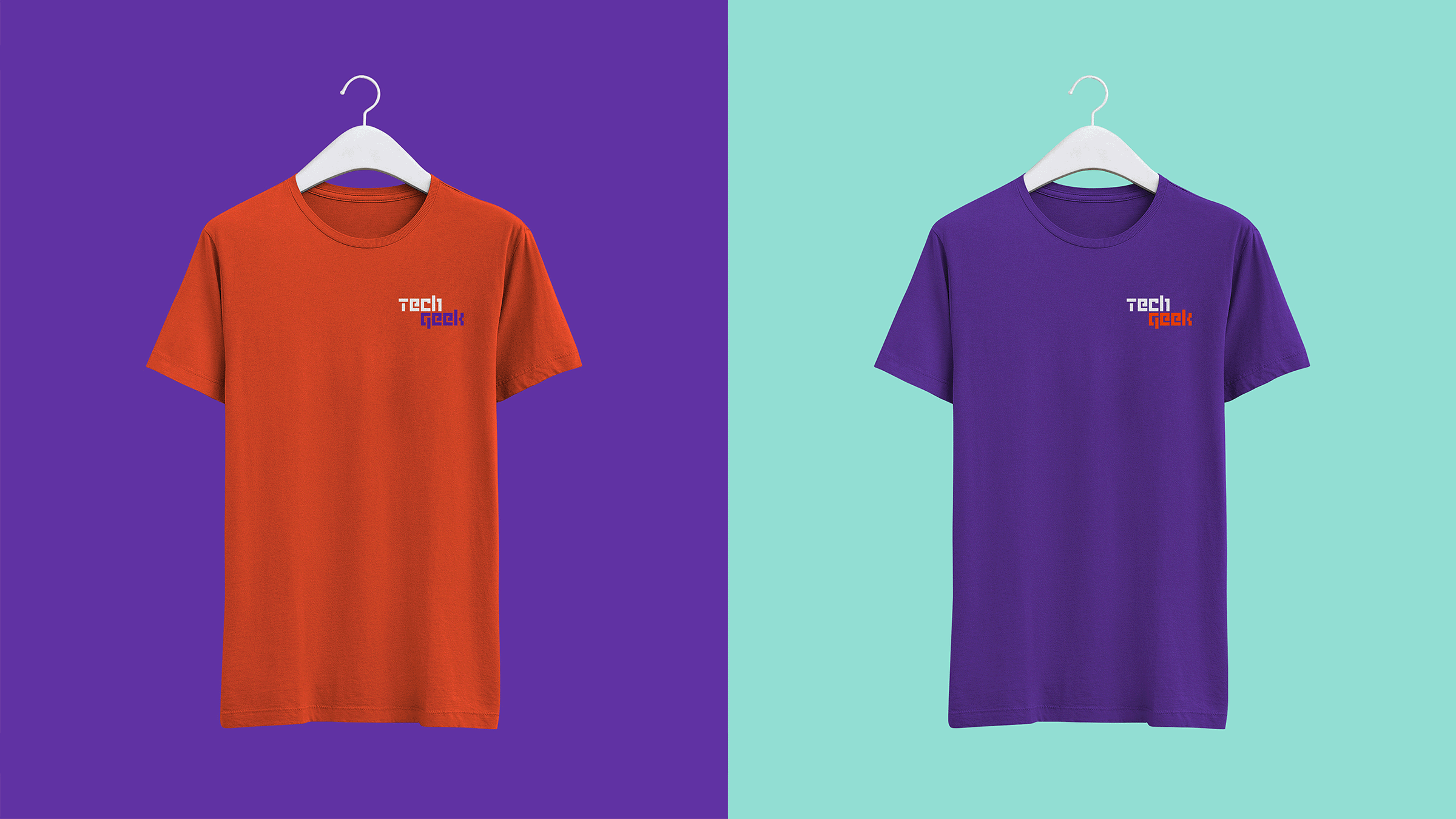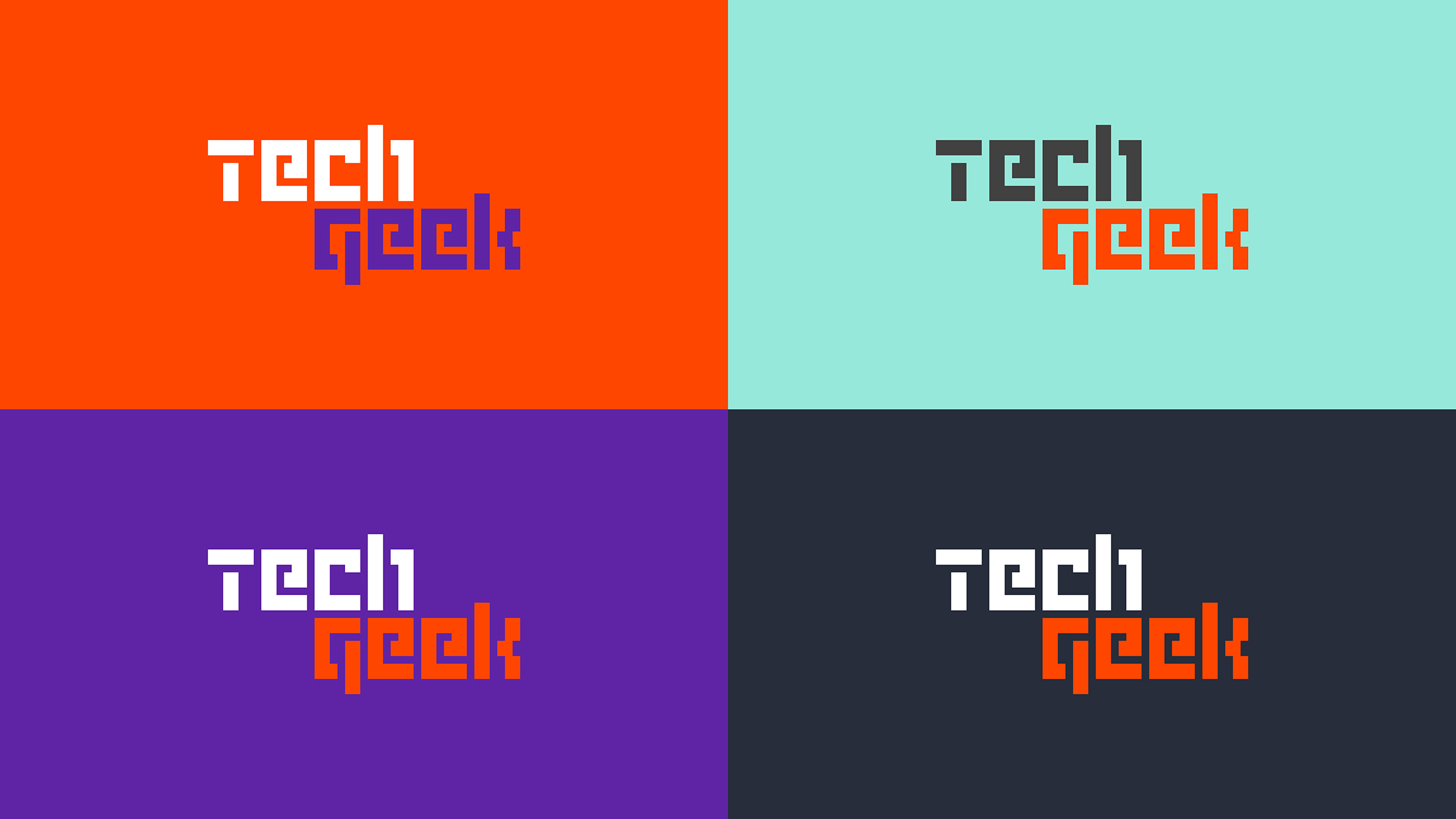 To achieve the clean, vibrant and slightly playful brand identity for Tech Geek, a vivid colour palette was carefully chosen to complement its playful take on a tech-inspired logotype.